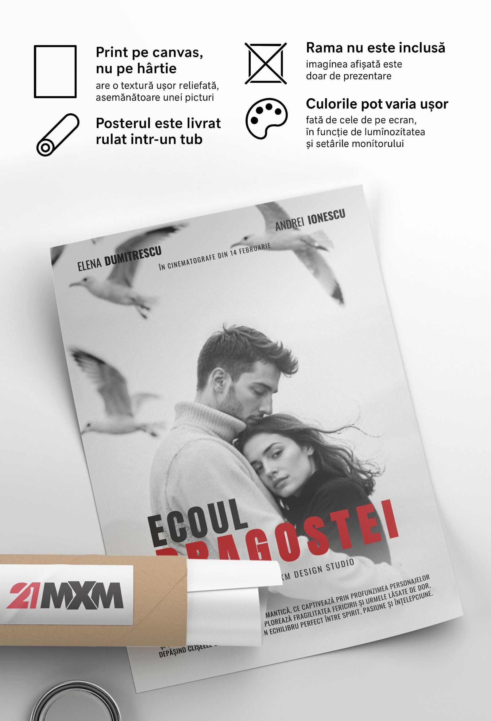 Posterele sunt livrate fără ramă, pentru a-ți oferi libertate totală. Poți alege orice ramă care se potrivește stilului tău și decorului casei tale. Noi îți oferim arta – tu îi oferi contextul final.