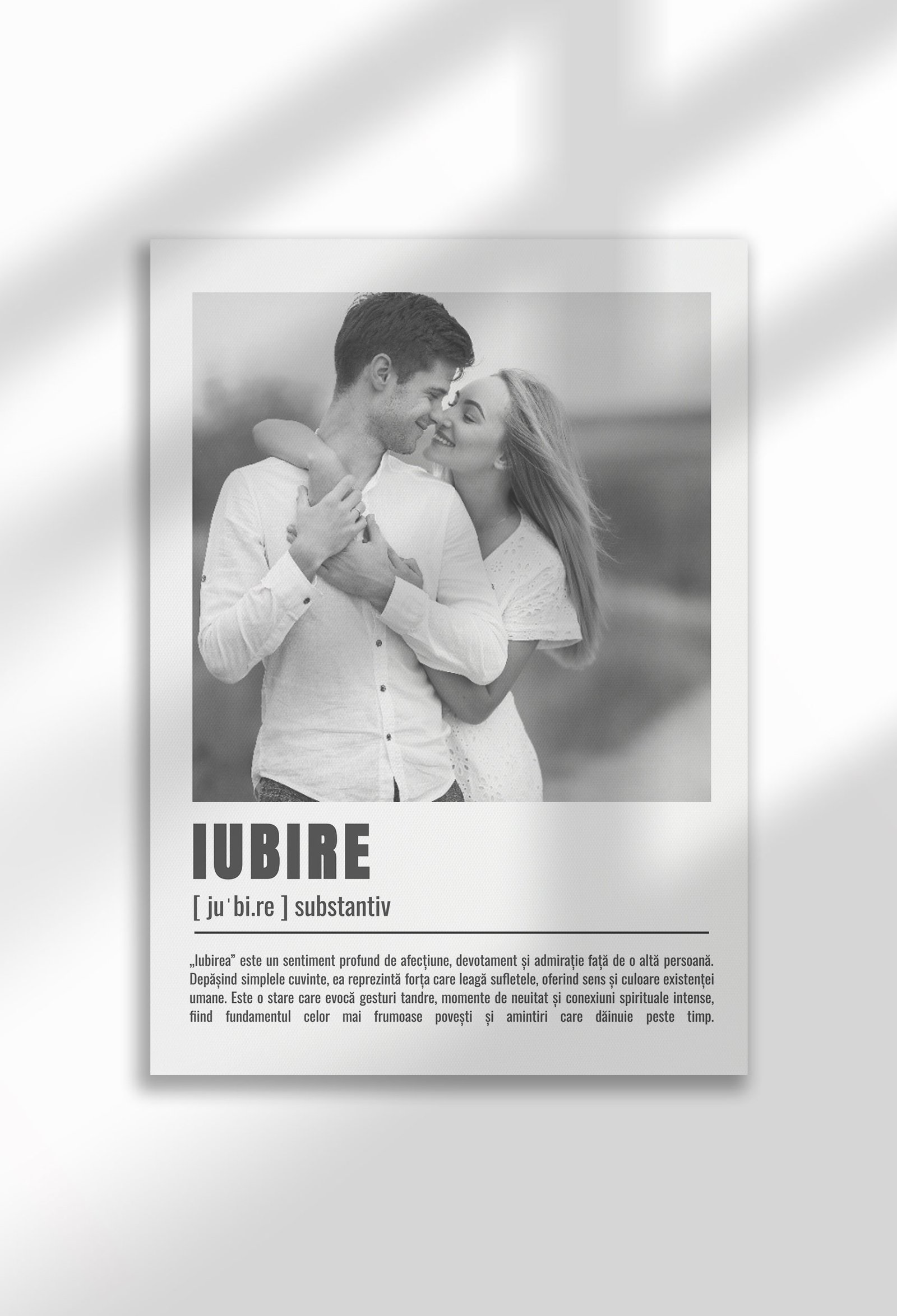 Este un dar personalizat 100%, realizat exact cu textele și imaginile tale. Completezi direct pe pagină mesajele dorite și încarci fotografiile, iar noi transformăm totul într-o piesă de artă creată exclusiv pentru persoana iubită. Un poster care nu va exista nicăieri altundeva.