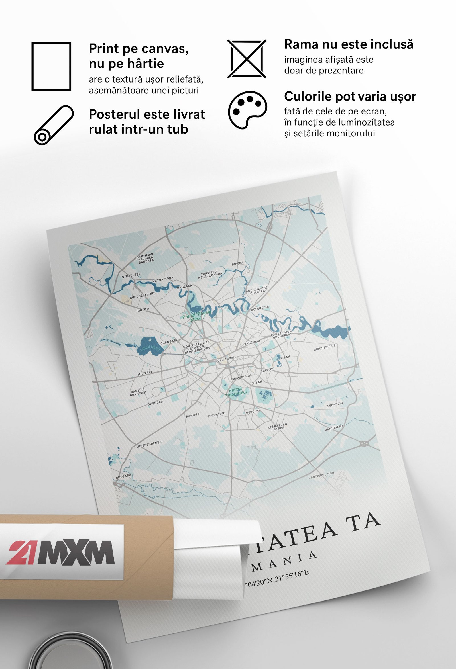- Noi ne ocupăm de printarea la rezoluție maximă pe canvas premium și de ambalarea atentă.