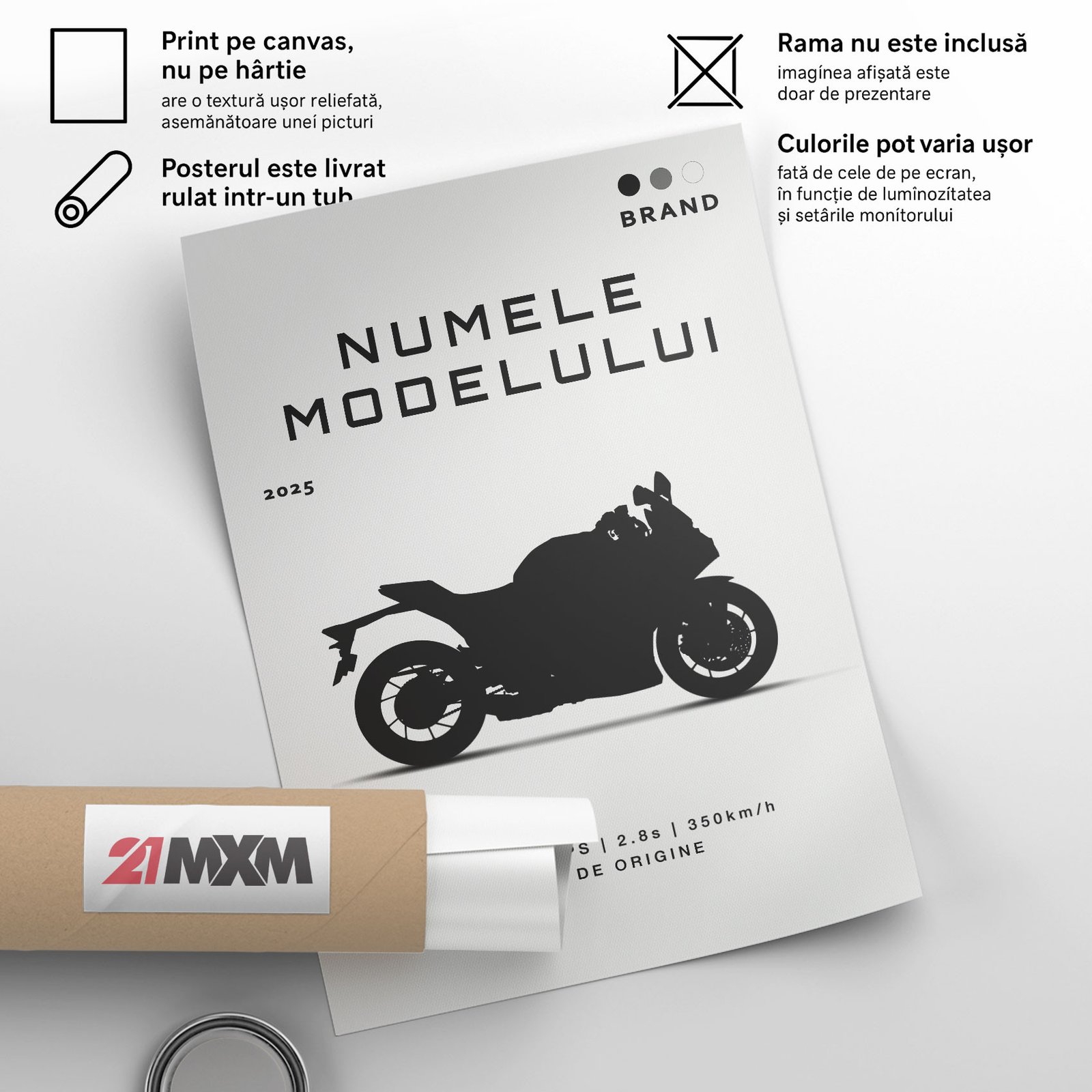 Printăm pe canvas alb mat de înaltă calitate, nu pe hârtie ieftină. Folosim cerneluri profesionale, rezistente în timp, și o rezoluție impecabilă, pentru ca posterul tău să arate spectaculos ani la rând.