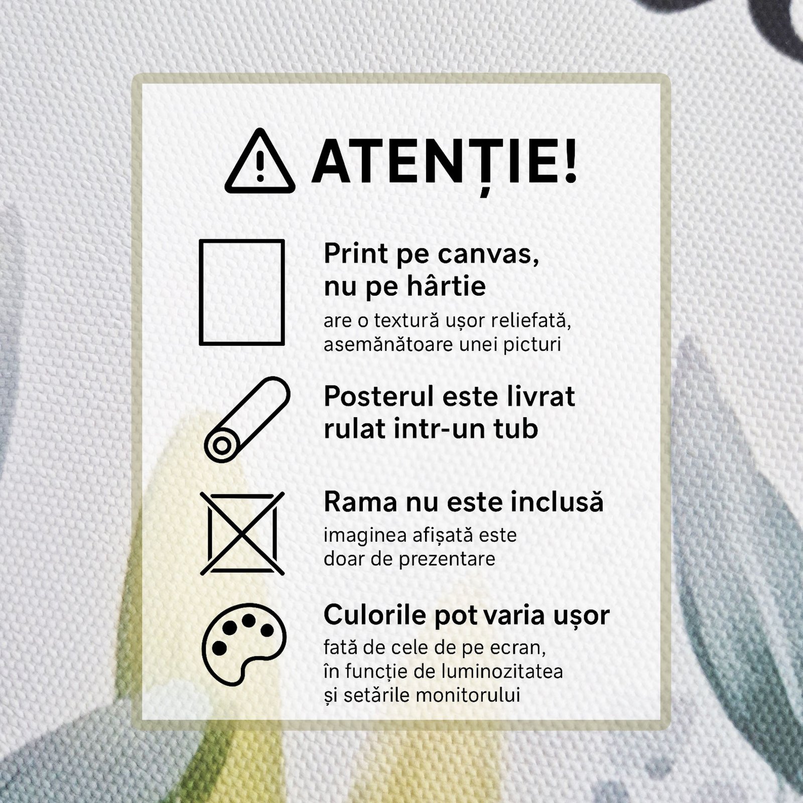 • Canvas Alb Mat: Fără reflexii, cu aspect premium de galerie.